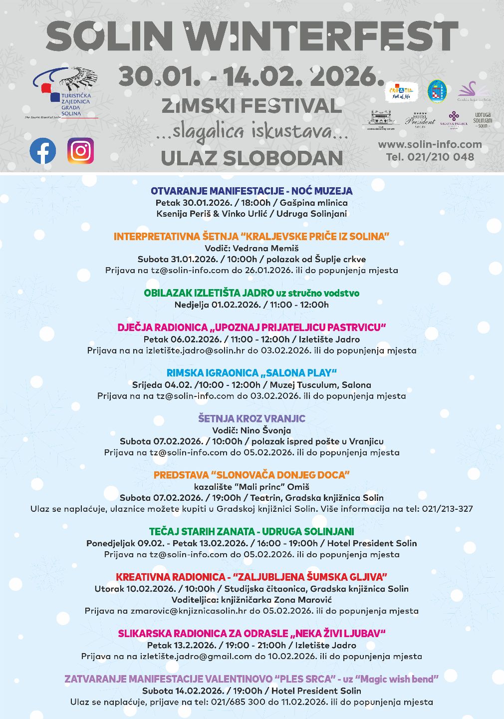 Riječ je o projektu zimskog festivala koji kroz 4 različite teme prikazuje svu kulturnu, prirodnu i vjersku baštinu grada Solina kako sugrađanima i posjetiteljima okolnih gradova, tako i turistima te kao najmlađi grad u RH ukazuje na važnost obitelji i života. Dakle osim edukacije svojih sugrađana (djece i odraslih) te osmišljavanja kulturnih sadržaja u toku zimskih mjeseci, ovaj projekt je zamišljen i s ciljem razvoja turističke ponude vansezone i pozicioniranje grada Solina kao destinacije koja živi 365 dana u godinu, sukladno strateškim ciljevima razvoja turizma u RH.